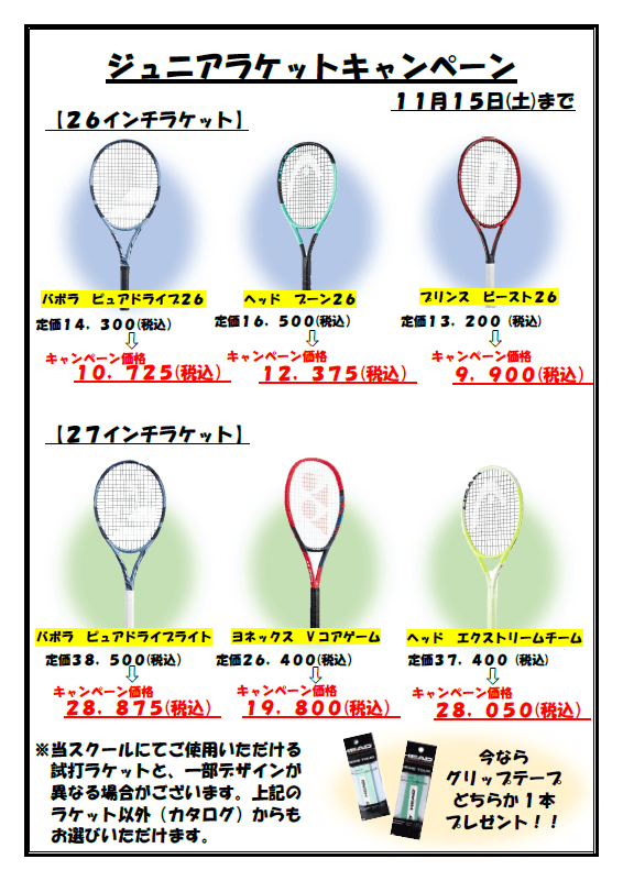 現在、ジュニアラケットキャンペーンを11/15(土)まで実施中です!