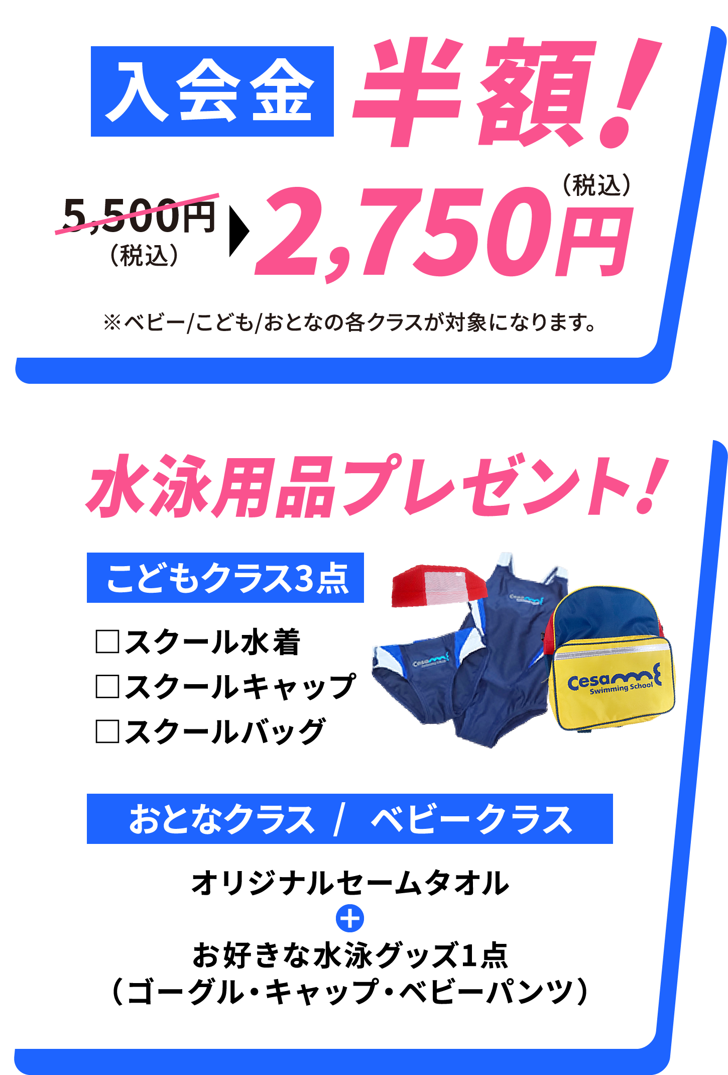 ベビークラスは⺟⼦⼿帳もご⽤意ください。※入会お手続き時のお支払いは、クレジットカードのご利用も可能です。