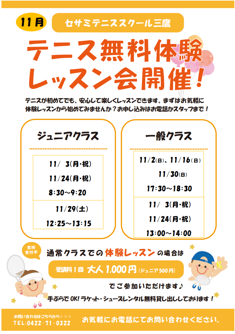 無料体験レッスン会11月開催!!