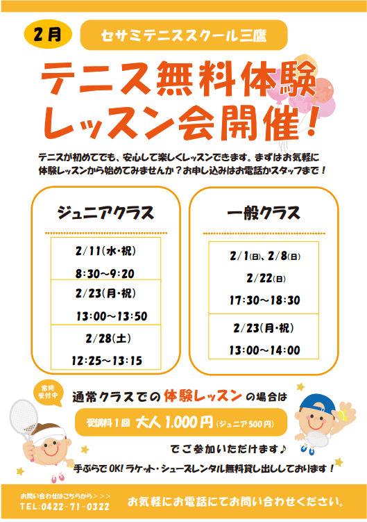 テニスが初めての方限定で無料体験にご参加いただけます!