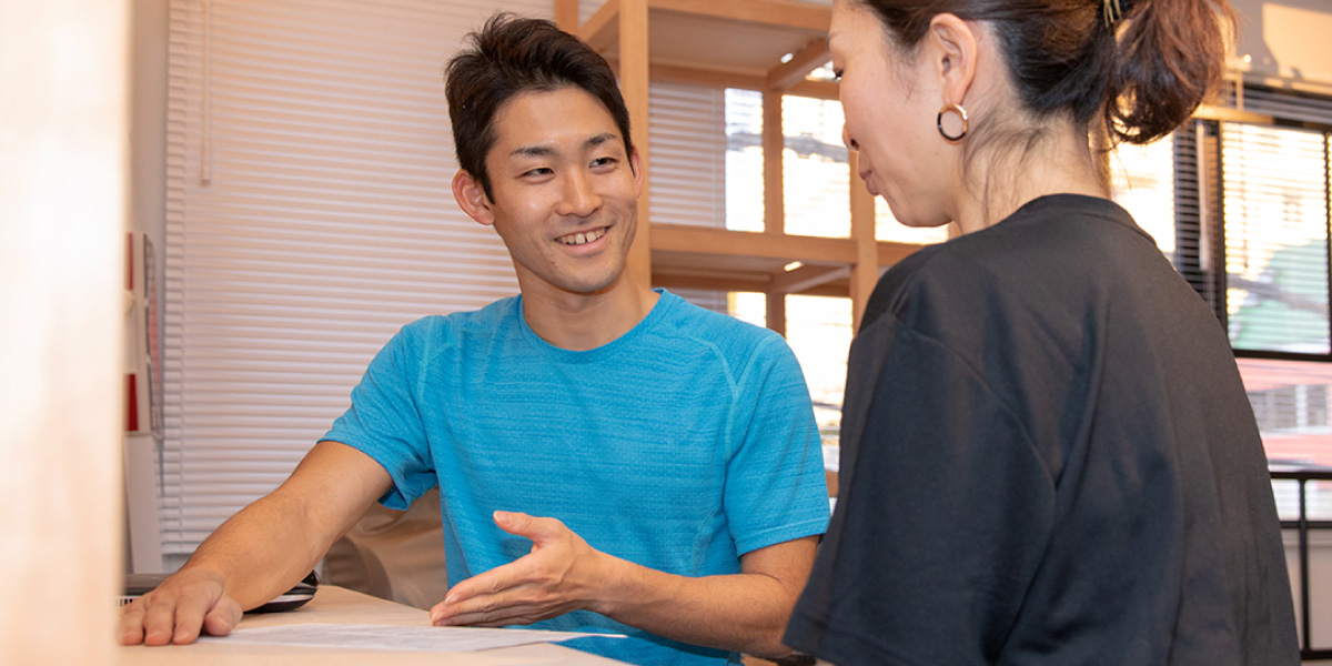 担当トレーナーがお客様のライフスタイルや体調、運動の目的・目標を丁寧にお聞きいたします。