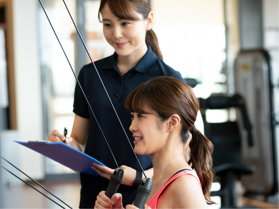 ATHELETICマシンの使い⽅やプログラム指導で、運動の楽しさ、効果を伝える仕事です。
